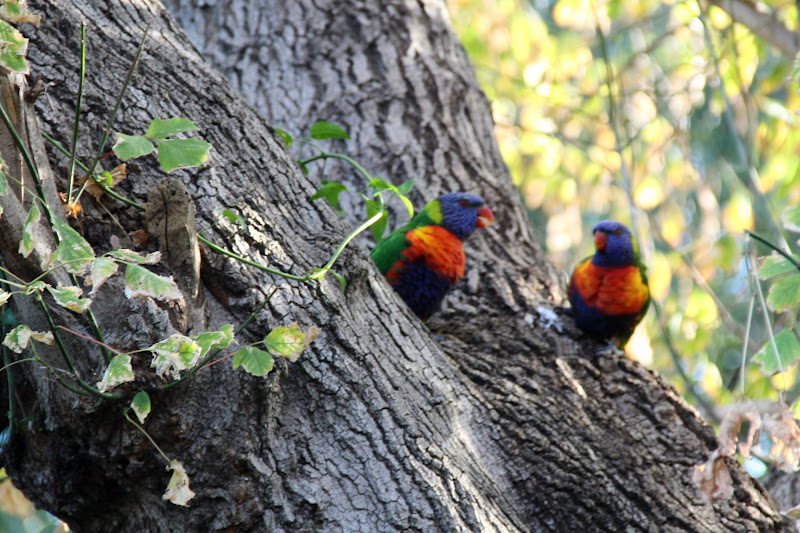 They were hanging about today, and to my wonderful surprise they were sitting further down the tree. I whipped out the camera, and snuck out the house to take photos, all the while making sure The Cat didn't follow me out [she informed me that there were birds in the backyard].